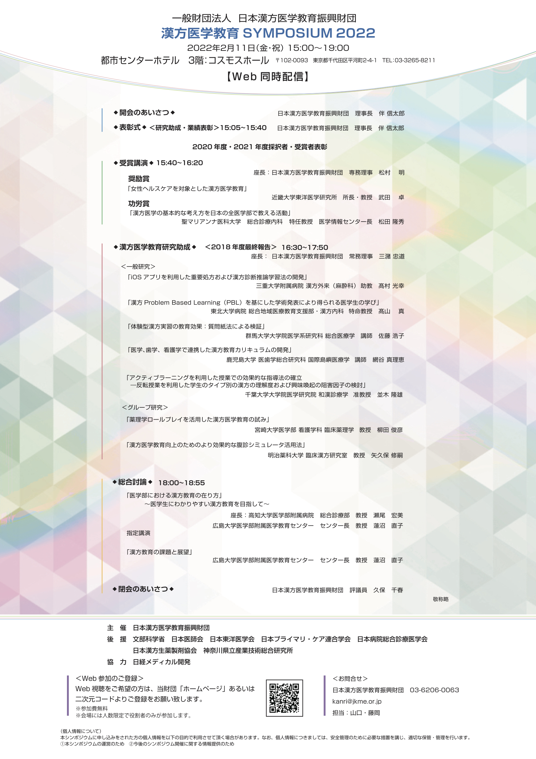 2022年2月11日、当財団主催「漢方医学教育 SYMPOSIUM 2022」をWebにて開催致しました。